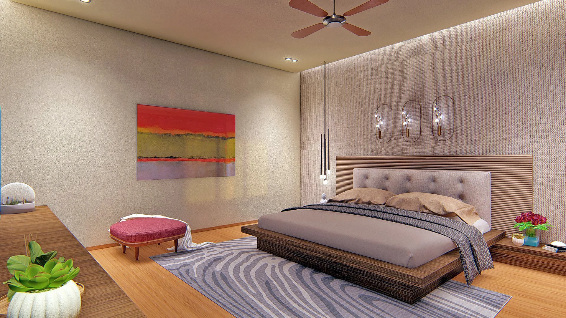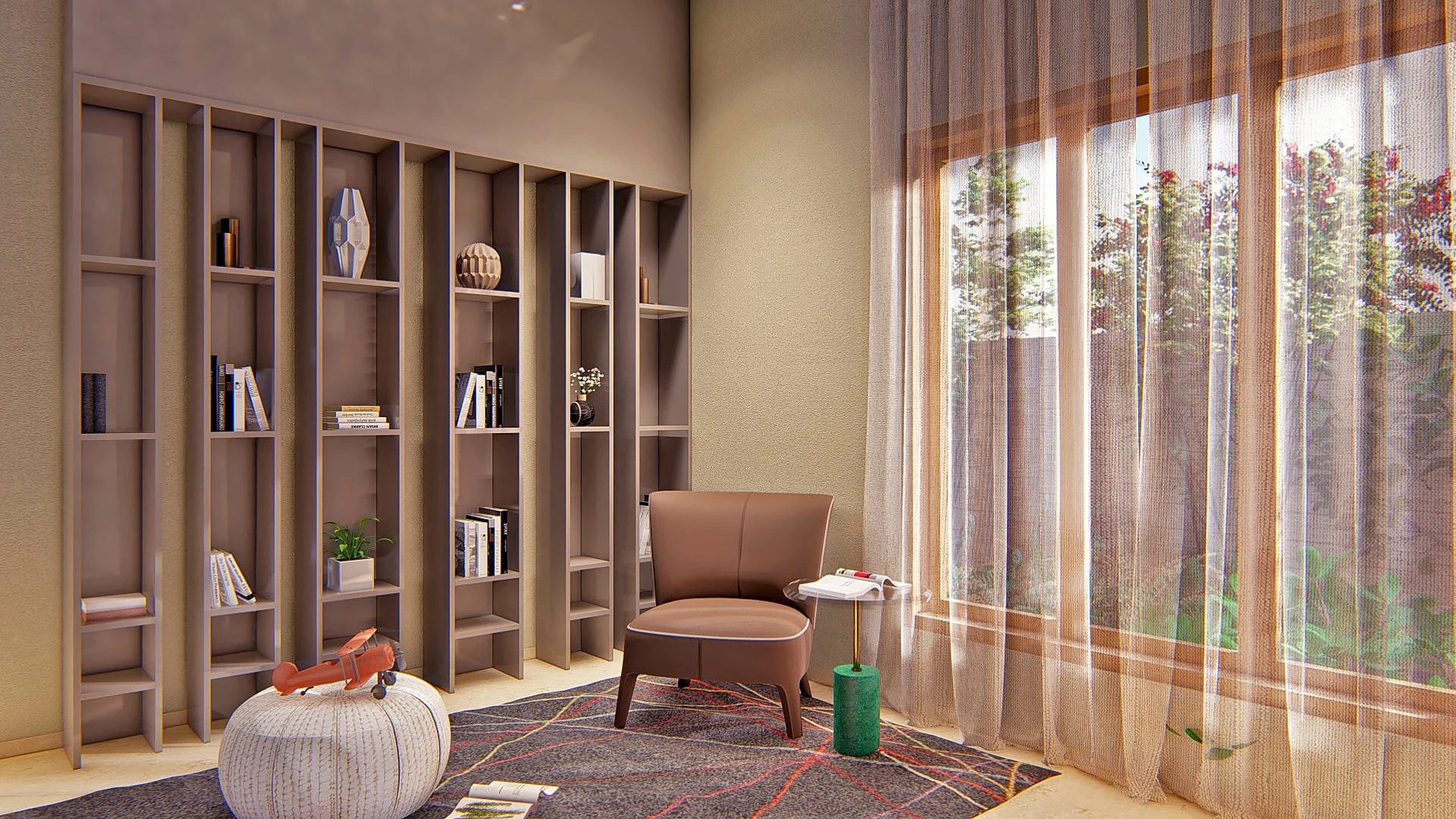 Besides the vertical louvers that run from the metal gate through to the skin of the building, the terrace garden also adds character to the structure. The interior is equally appealing as the exterior. Each space has been meticulously designed with fine details, and the unused corner space has been restored to its original purpose. With wood flooring, brass inlays in the headboards, customized furniture, and artwork, the bedrooms fulfill their purpose.