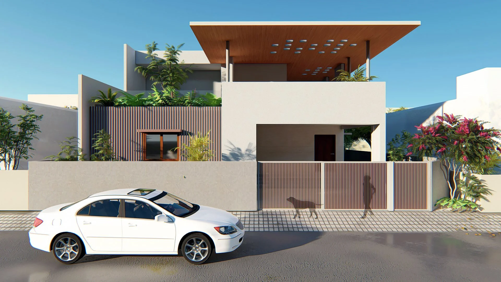 Existing project, which is undergoing modification, and we have been asked to enhance the building's attributes. An emphasis is placed on bringing clarity to the exterior appearance of the building. A wide overhang with a wood treatment on the underside allows the ray of light to enter the structure.